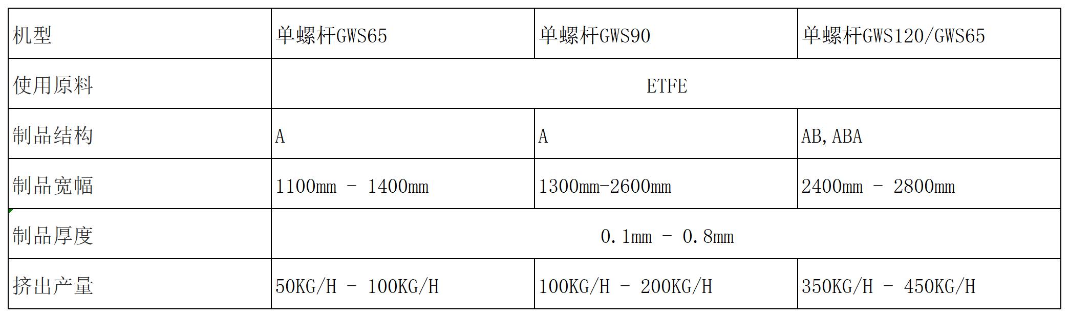 ETFE薄膜是含氟塑料中的其中之一,具有良好的ETFE膜透光率、自潔性、絕緣性能、抗?jié)駸岷湍屠匣阅芏粡V泛應(yīng)用在各個(gè)領(lǐng)域。ETFE氟塑料膜由于含有氟元素,在熱加工時(shí)容易發(fā)生熱分解,腐蝕加工設(shè)備和模具,因此,加工設(shè)備和工藝不同于普通的熱塑性塑料。本生產(chǎn)線采用特殊設(shè)計(jì)的設(shè)備和工藝技術(shù),成功開發(fā)出了ETFE等氟塑料薄膜的流延擠出生產(chǎn)線。